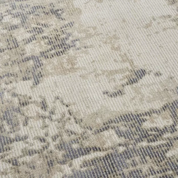 The Maded Floor Rugs pattern presents a modern take on distressed art, with a harmonious mix of soft blue and neutral beige tones.
