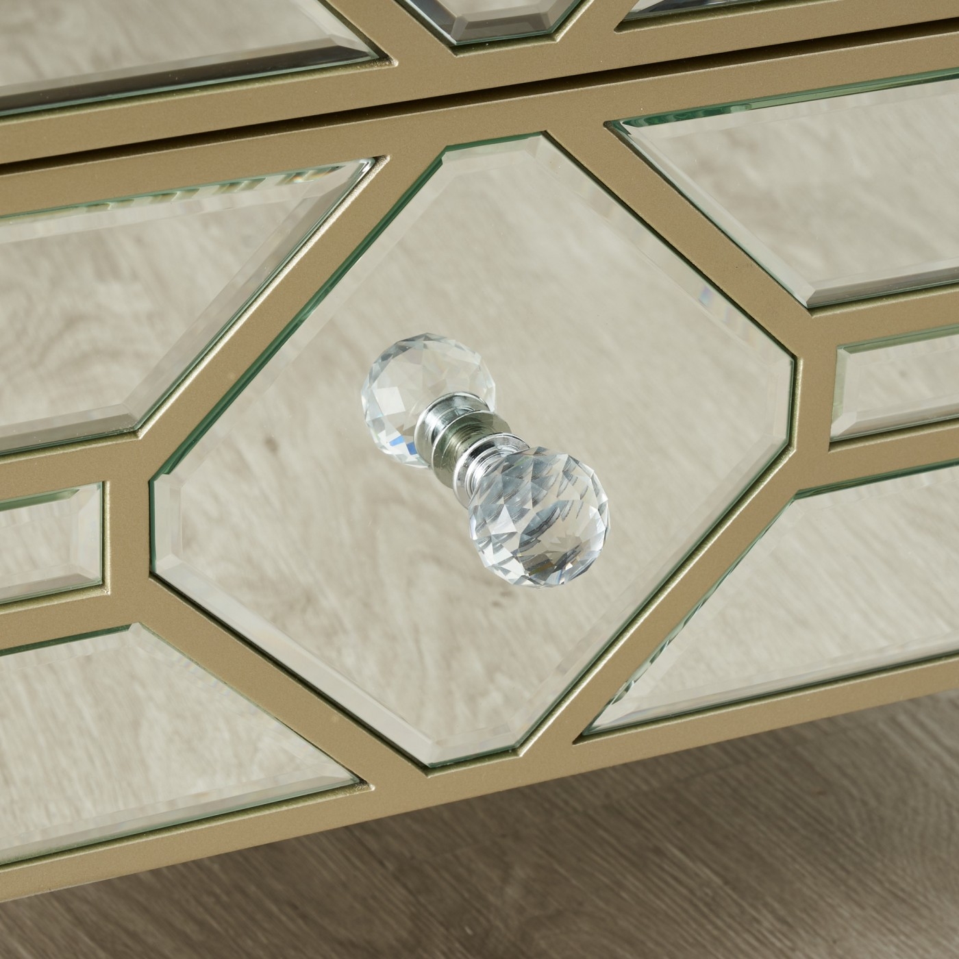 It also offers a wide variety of stylish possibilities with its reflective surface. A beautiful array of elegantly designed mirrors ornament the Madeleine's frame. These mirrors are fashioned in an awe-inspiring geometric pattern reminiscent of vintage art-deco style. The Madeleine's four legs are also panelled with mirrors to further increase its stylish appeal. Pair the Madeleine with one of our majestic beds and floor rugs.