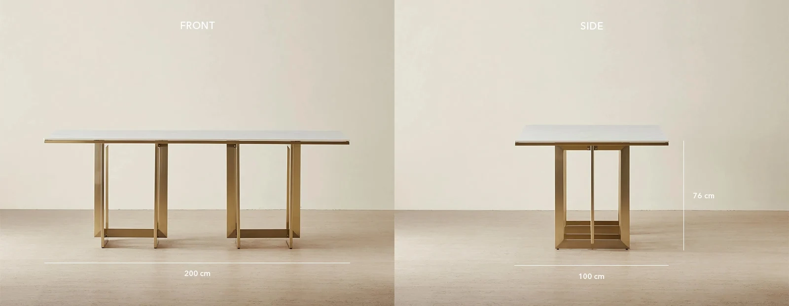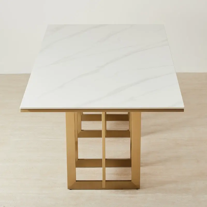 Maia White Sintered Stone Dining Table - Brushed Champagne Gold Stainless Steel Legs 200x100cm