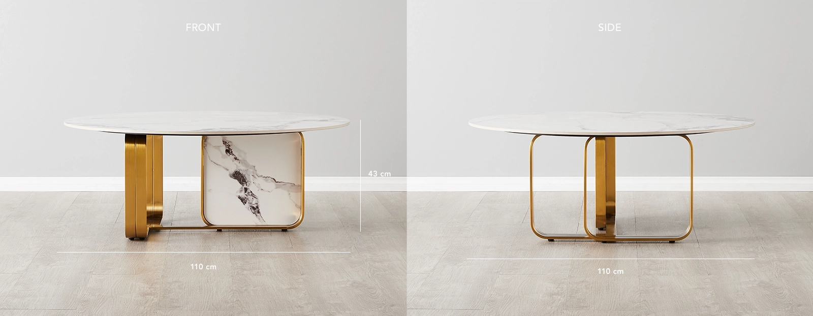 Marbella Round Cold Calacatta White Sintered Stone Coffee Table - Brushed Gold Frame