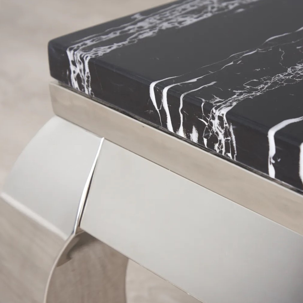 The Marble II Entertainment Unit blends function and style with its sleek black and silver tones, offering a modern yet versatile look. Designed for everyday living, its open shelf layout and spacious surface make it perfect for storing and displaying your media essentials.