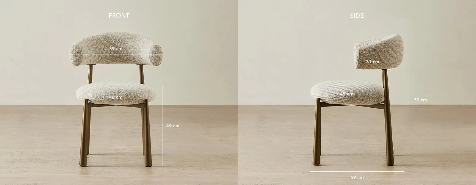 The rounded back section adds elegance, while striking bronze legs provide strength and balance. This combination makes it a stunning choice for any dining space.