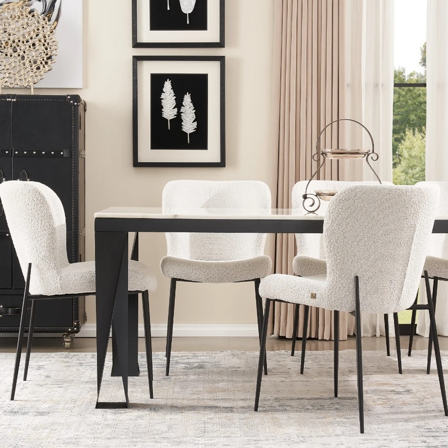 Masa Natural White Marble Dining Table - Black Legs 200cm