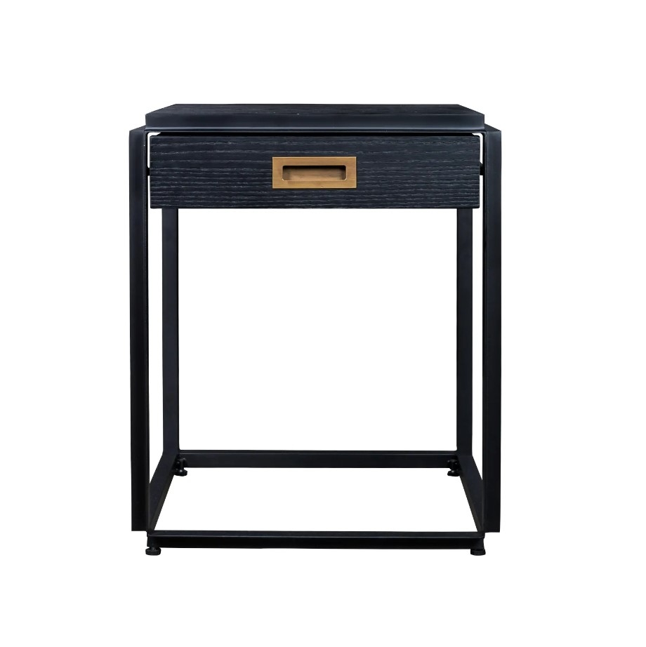 The simple yet refined design of the Mason Side Table allows it to serve multiple functions with ease. Its tabletop provides ample space for everyday essentials, be it a cup of coffee, a favorite book, or a stylish lamp. A distinctive feature of the Mason is its drawer, equipped with golden handles that beautifully complement the table's sleek black frame.