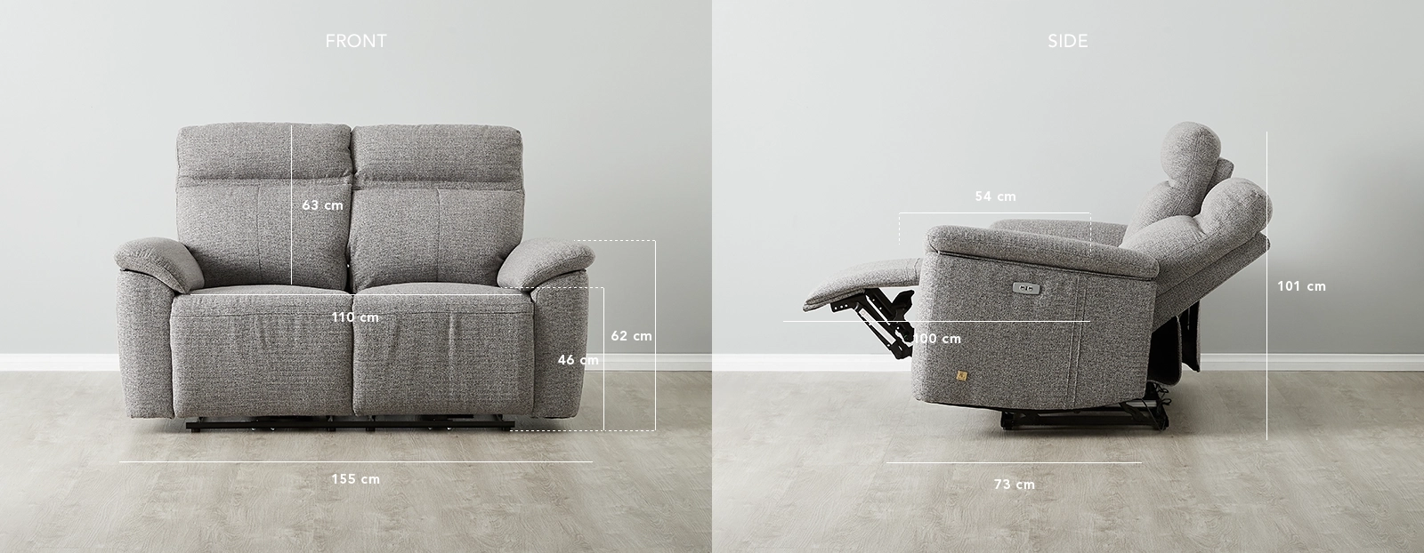 Introducing the McKenna Fabric 2-Seater Electric Recliner, combining style, comfort, and modern convenience. The Dark Grey woven fabric adds coziness and a tactile experience to its timeless beauty.