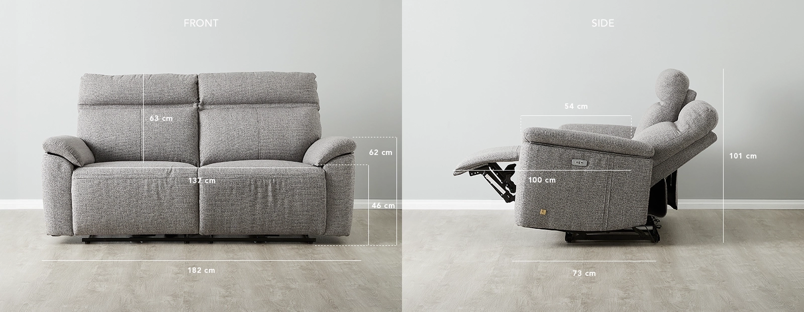 Introducing the McKenna Fabric 3-Seater Electric Recliner, combining style, comfort, and modern convenience. The Dark Grey woven fabric adds coziness and a tactile experience to its timeless beauty.