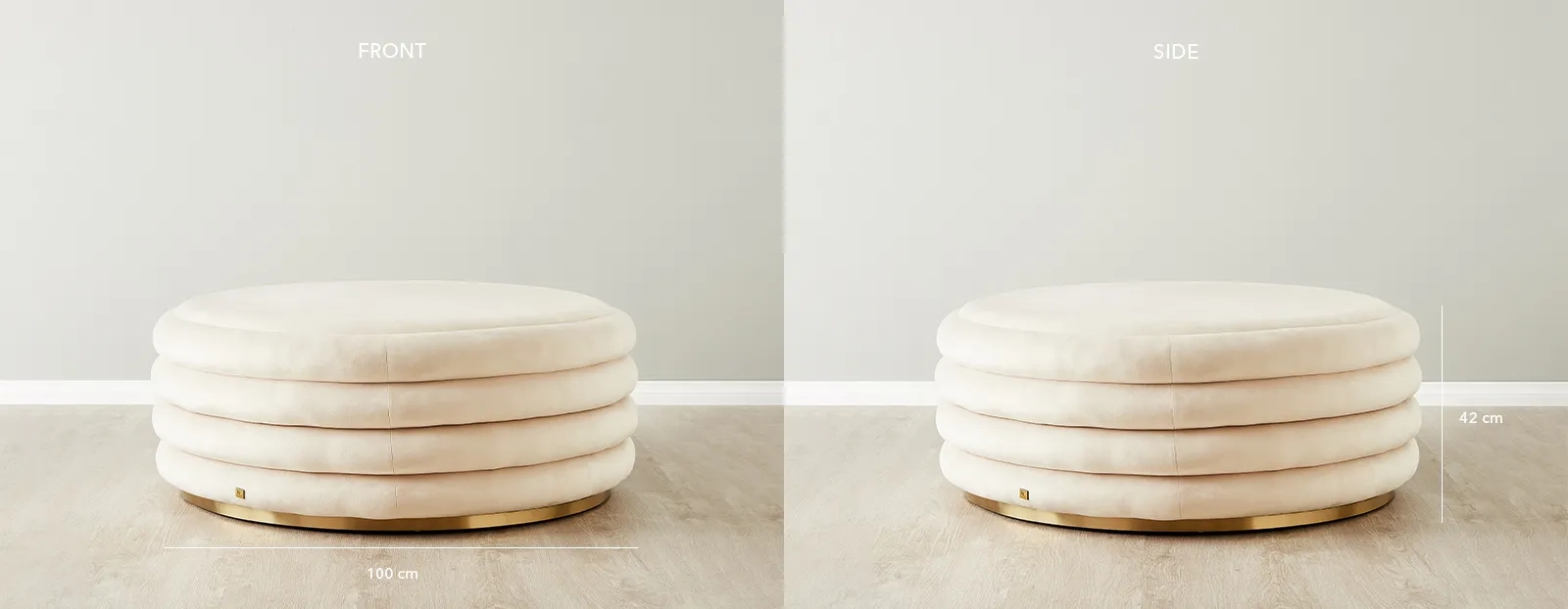 Megan Cream Velvet 100cm Round Ottoman