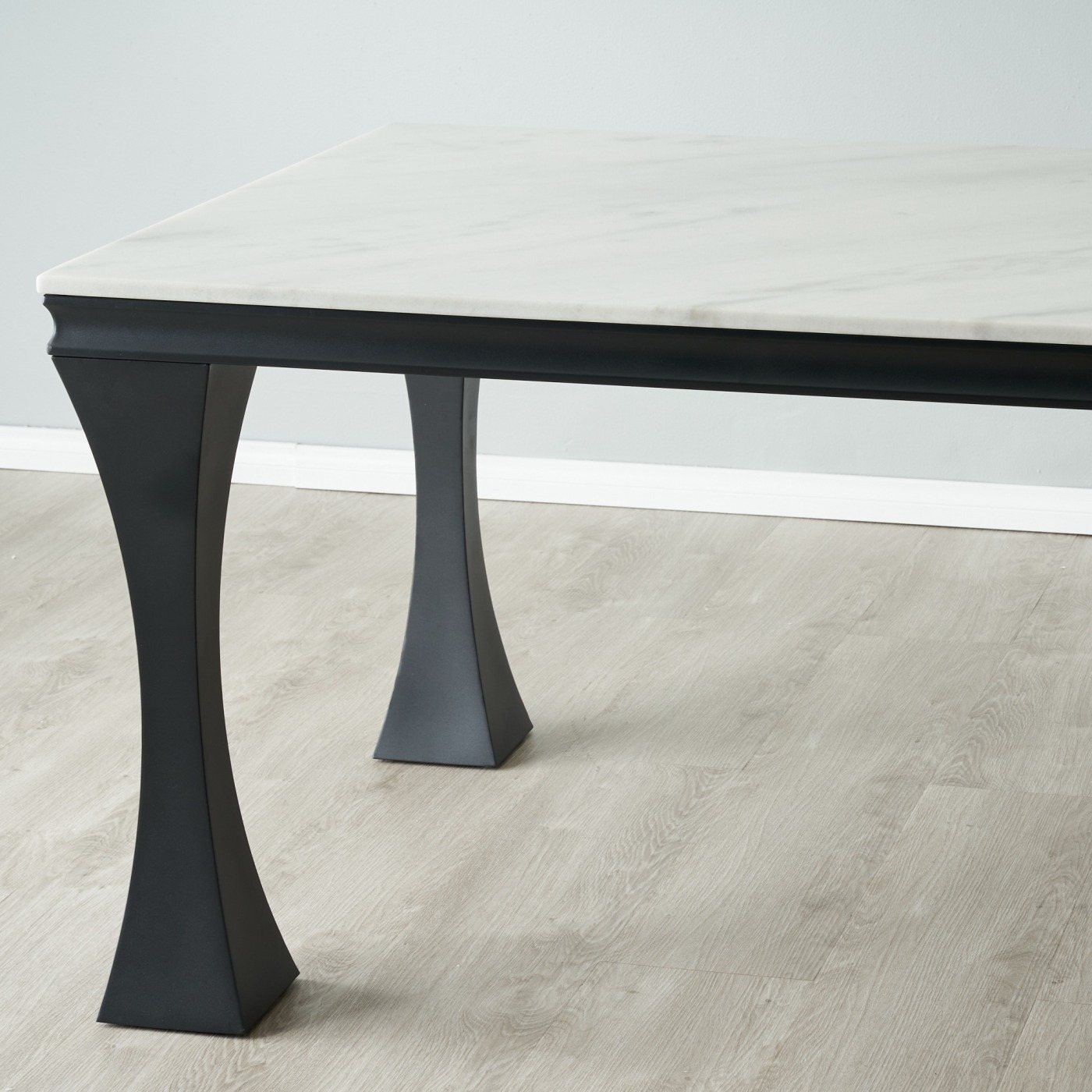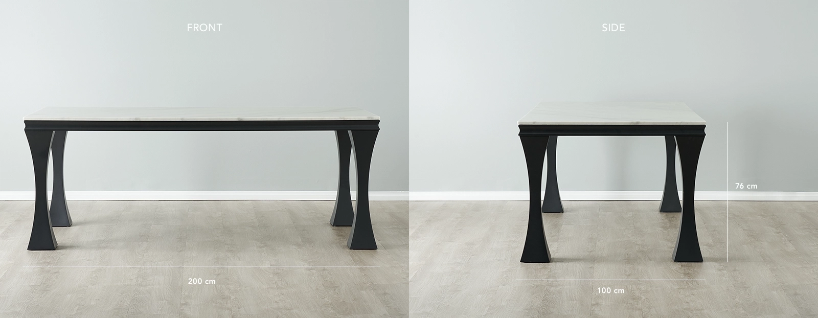 Providing stability and balance to the Melody is a symphony of stainless steel legs. These have been meticulously crafted to form a concave design which further adds to the Melody's sophisticated aesthetics. The matching of white marble with the dark-coloured frame creates an undeniably luxurious look. Pair the Melody with an ensemble of our dining chairs.