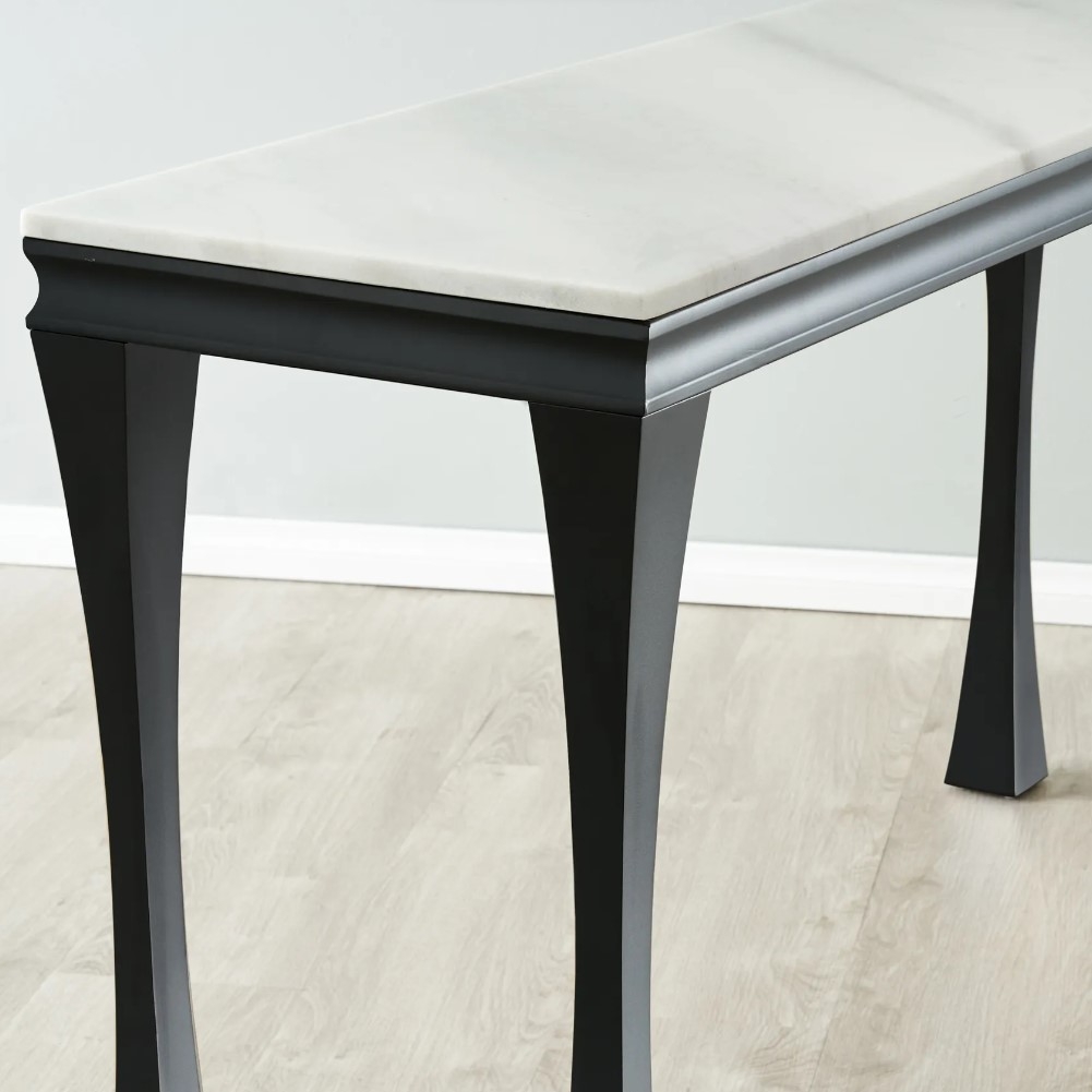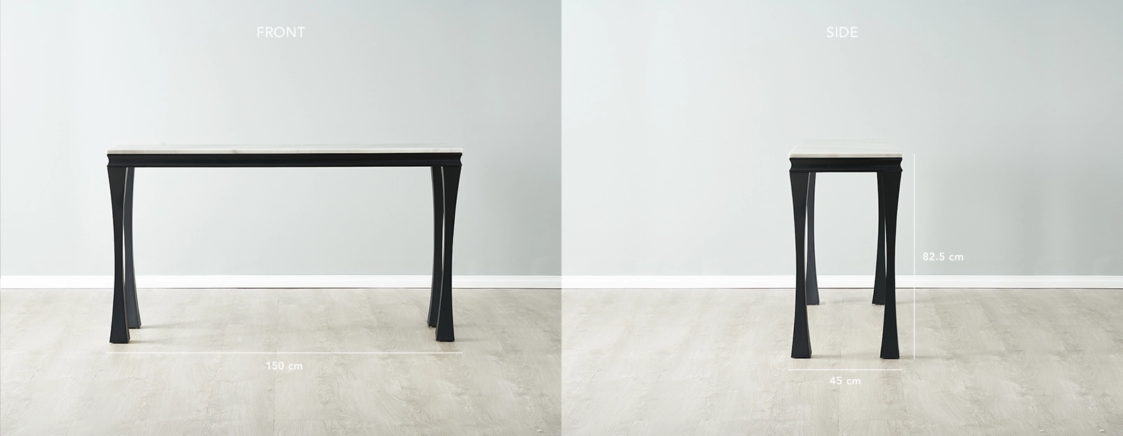 The Melody Marble Console Table's stylish design and colours offer a symphony of luxury to your home. A gorgeous cut of white marble serves as the Melody's spacious tabletop. Dancing along its outline are dark-coloured veins to create an undeniably enthralling display of colour. Melody Marble Console Table serves as an accent piece to display and store your keepsakes and decor on its spacious tabletop.