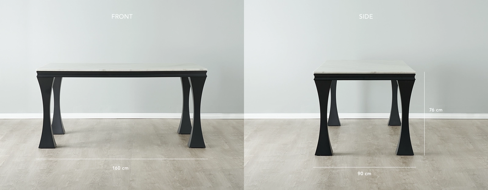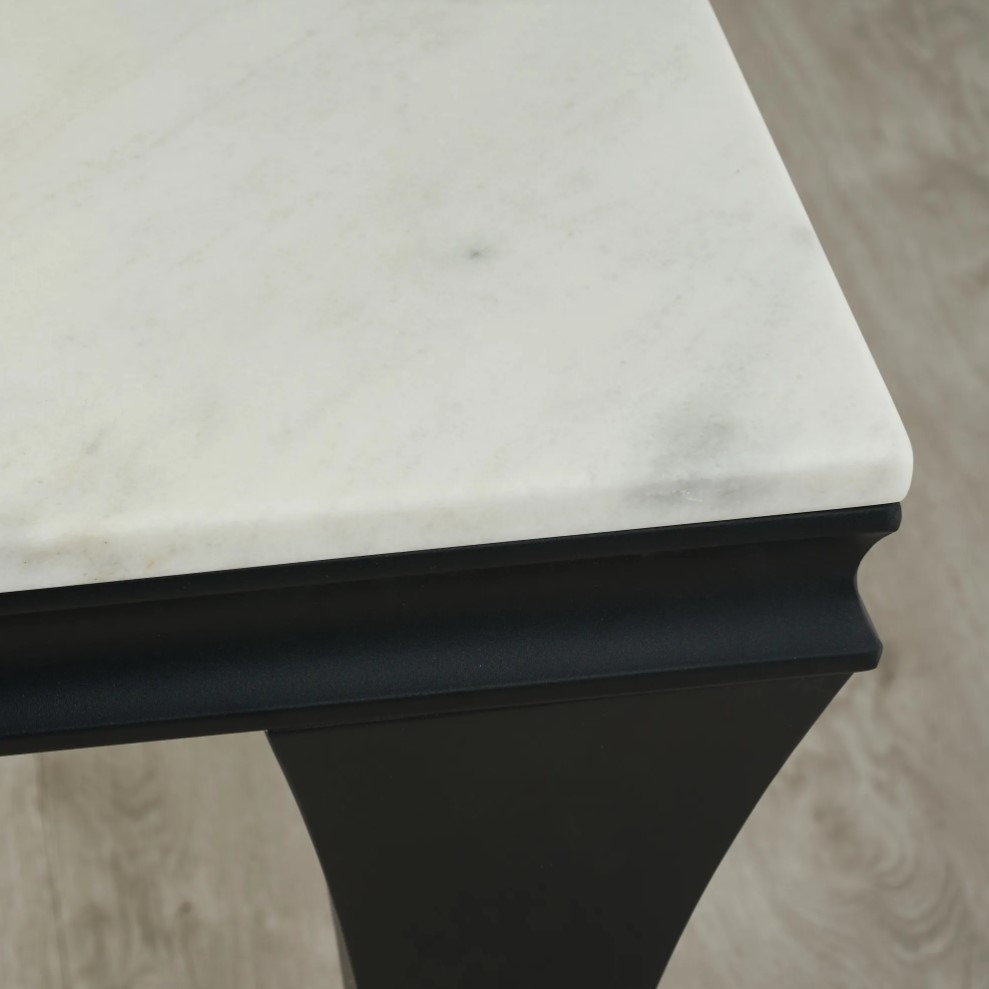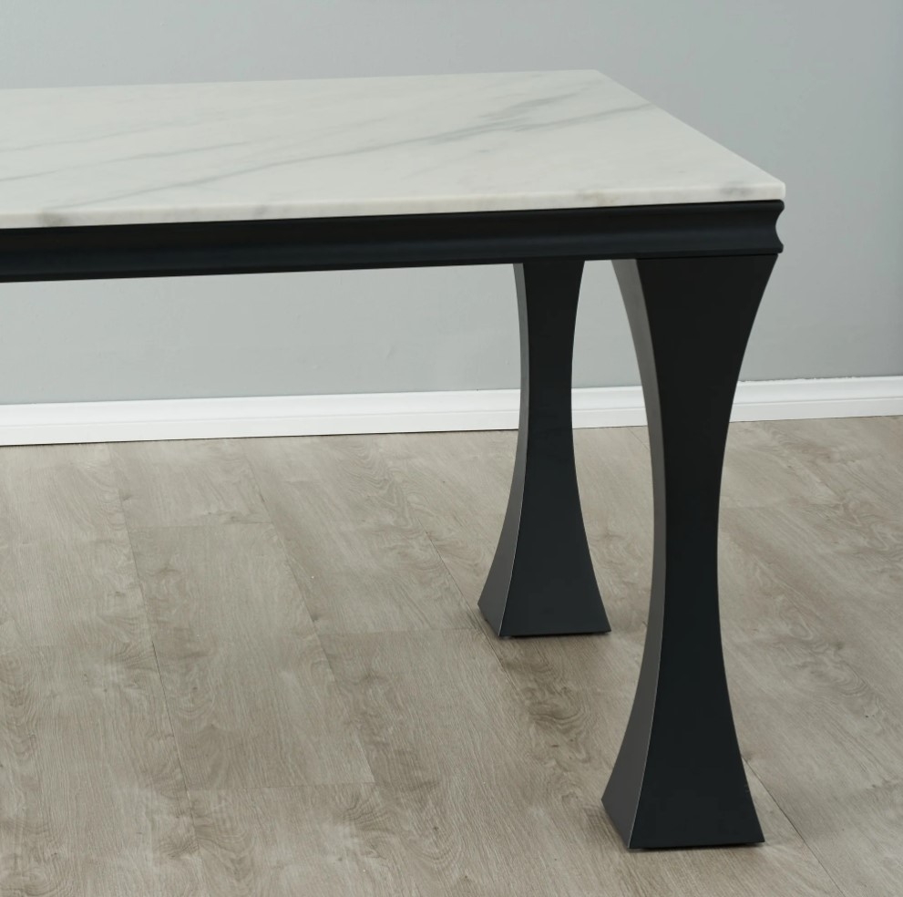 Providing stability and balance to the Melody is a symphony of stainless steel legs. These have been meticulously crafted to form a concave design which further adds to the Melody's sophisticated aesthetics. The matching of white marble with the Black-coloured frame creates an undeniably luxurious look. Pair the Melody with an ensemble of our dining chairs.
