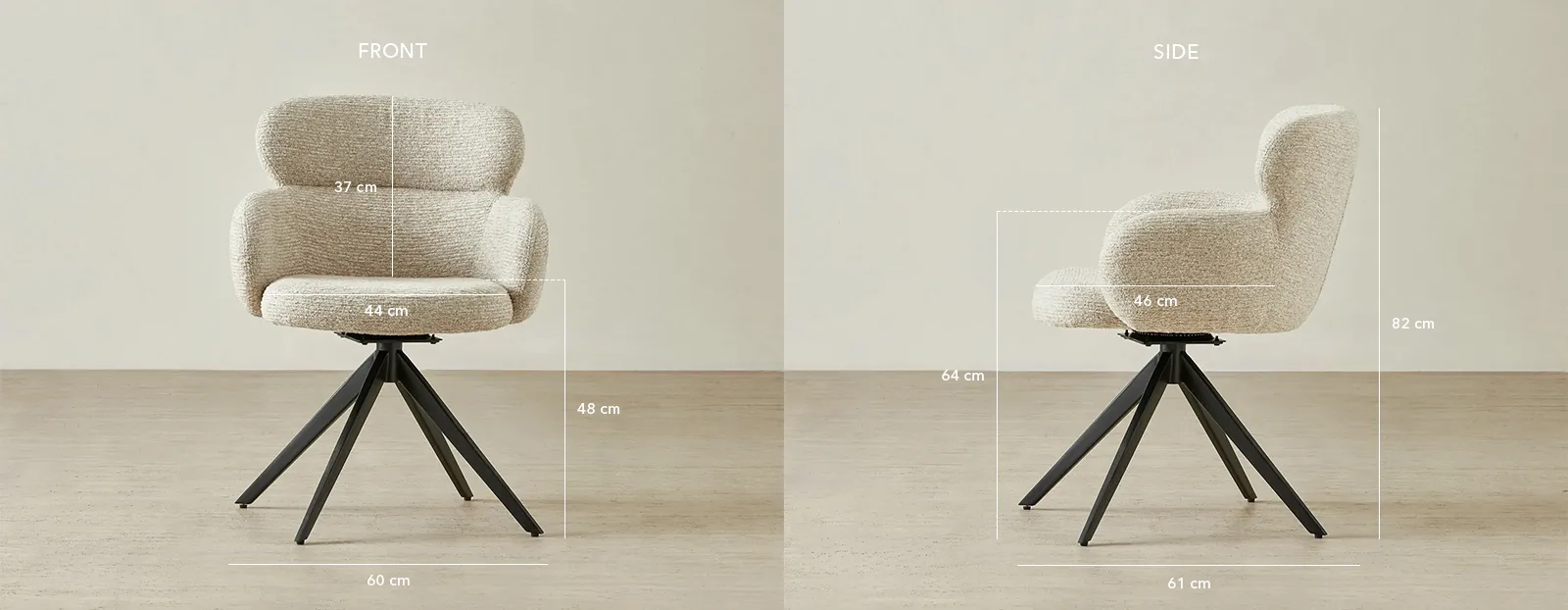 The Melville Dining Chair brings softness and movement to the table with its curved, layered backrest and plush cushioning. Upholstered in Dusty Beige fabric, it offers tactile warmth and relaxed sophistication.