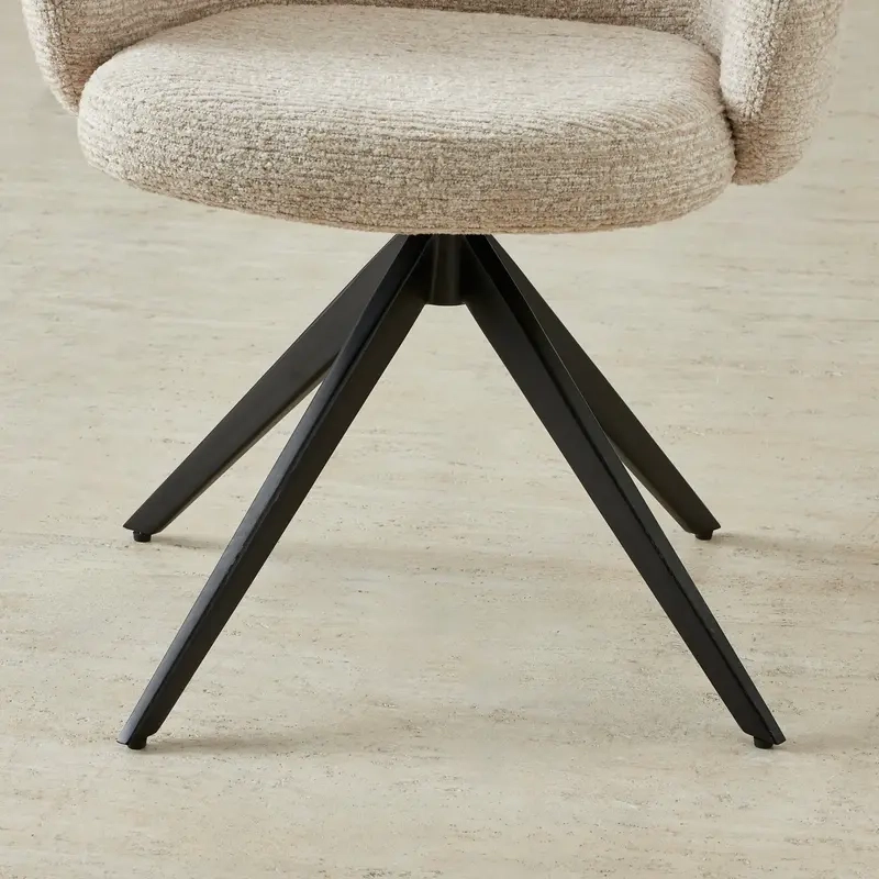 The swivel function adds a dynamic twist, making it easy to turn and engage. Set on a sculptural black base, it’s a chair that feels as good as it looks, perfect for modern dining with a casual edge.