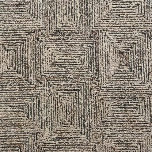 Its design consists of concentric squares, woven with shades of beige and brown, which bring warmth to any space.