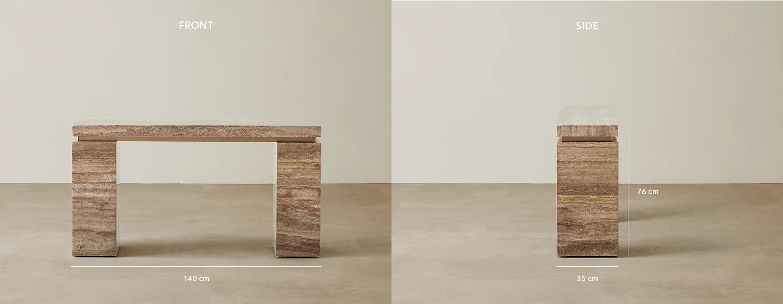 Drawing inspiration from the geometric form of a cube, our aim with this collection was to evoke a sense of strength and resilience through unified monolithic blocks. These designs not only exude a robust character but are indeed structurally robust. Travertine, the chosen material, is renowned for its durability and practicality, embodying the essence of Roman architecture and history. Its natural and earthy tones, along with its textured appeal, add depth to its allure. Crafted by Bianca Armenion, The Monolith collection features a dining table, coffee table, and side table available in natural cream and silver grey colorways with brass finishes. This timeless collection epitomizes the slow furniture movement, offering enduring appeal that we hope you'll cherish.