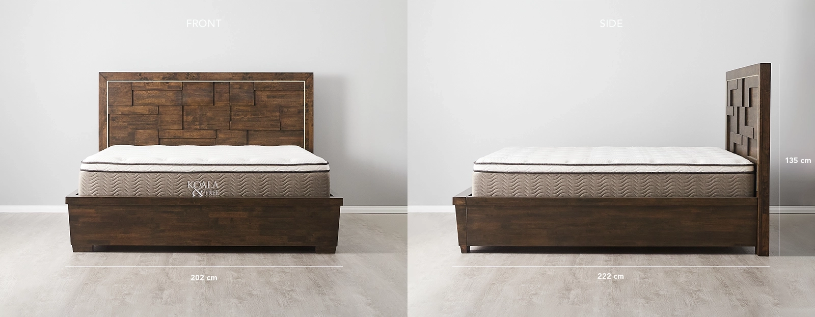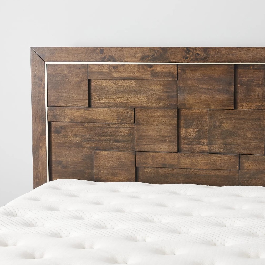 Elevate your bedroom with the captivating Montana Deep Brown Wooden King Bed. Combining modern design with rustic charm, this majestic piece becomes the focal point of your space. The stylishly crafted headboard of the Montana bed is a geometric wonder, showcasing a captivating puzzle-like motif. Made from a combination of prime wood, this intricate arrangement of elevated and depressed wooden pieces creates a visually striking and unique design.
