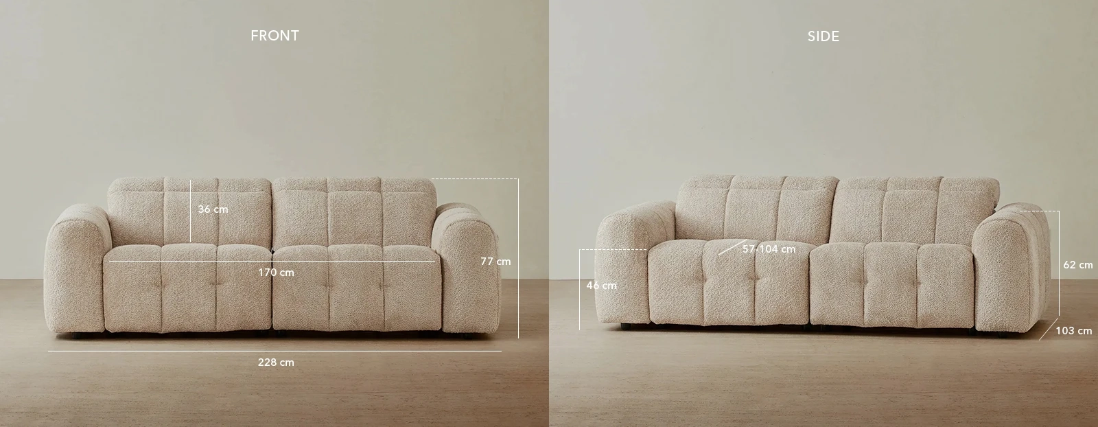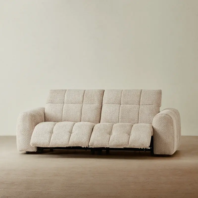Both seats feature dual electric recliners with adjustable head and footrests, offering personalized comfort. Designed for relaxation, it’s ideal for cozy living spaces or media rooms.