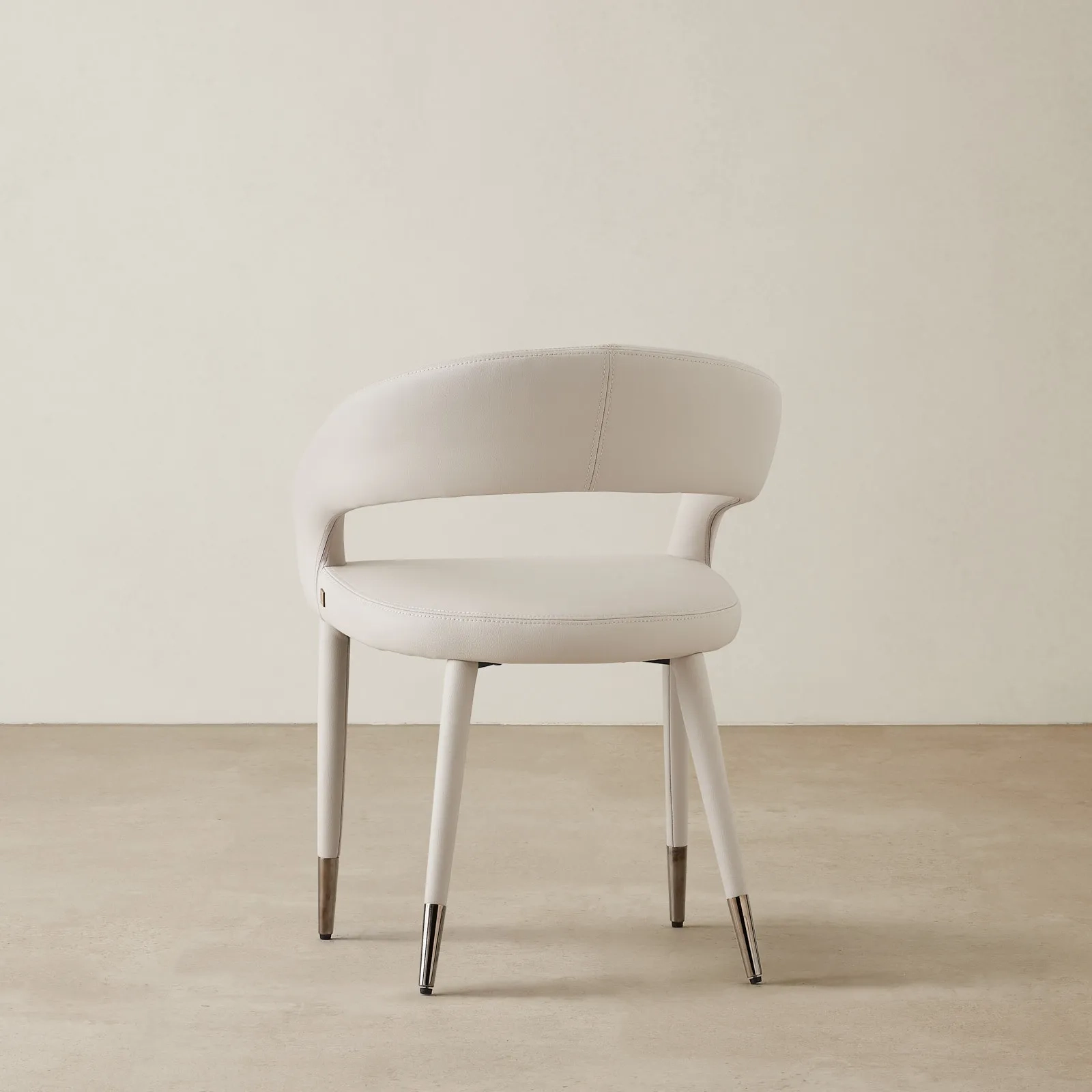 The Moulin's graceful curves flow from its curved backrest to its striking open-back design. Its cushioned seat provides comfort, while its luxury extends to the black nickel tipped legs.