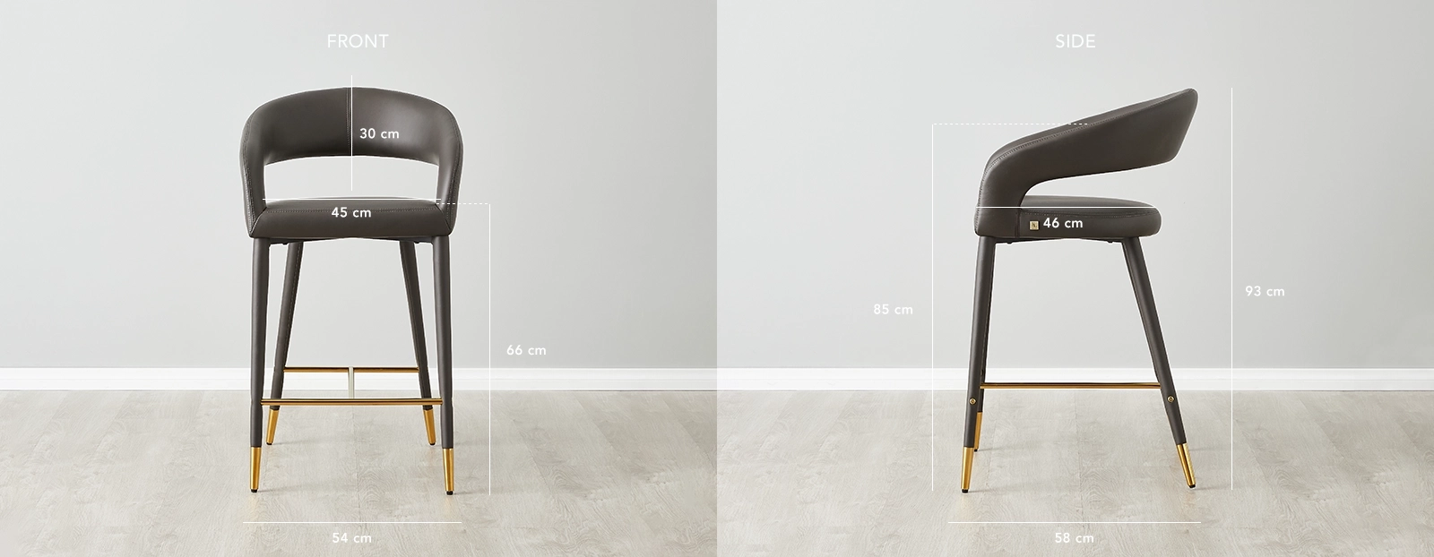 The Moulin Smoke Grey Vegan Leather Counter Stool is a seat of luxury that'll let you enjoy drinks and conversations like never before. High-quality Leather in a Sophisticated Smoke Grey shade drapes the entirety of the Moulin with its sophistication. The Moulin features a striking frame that echoes the tenets of mid-century modern design. The Moulin's graceful curves stem from its striking open-back feature and slim angled legs.