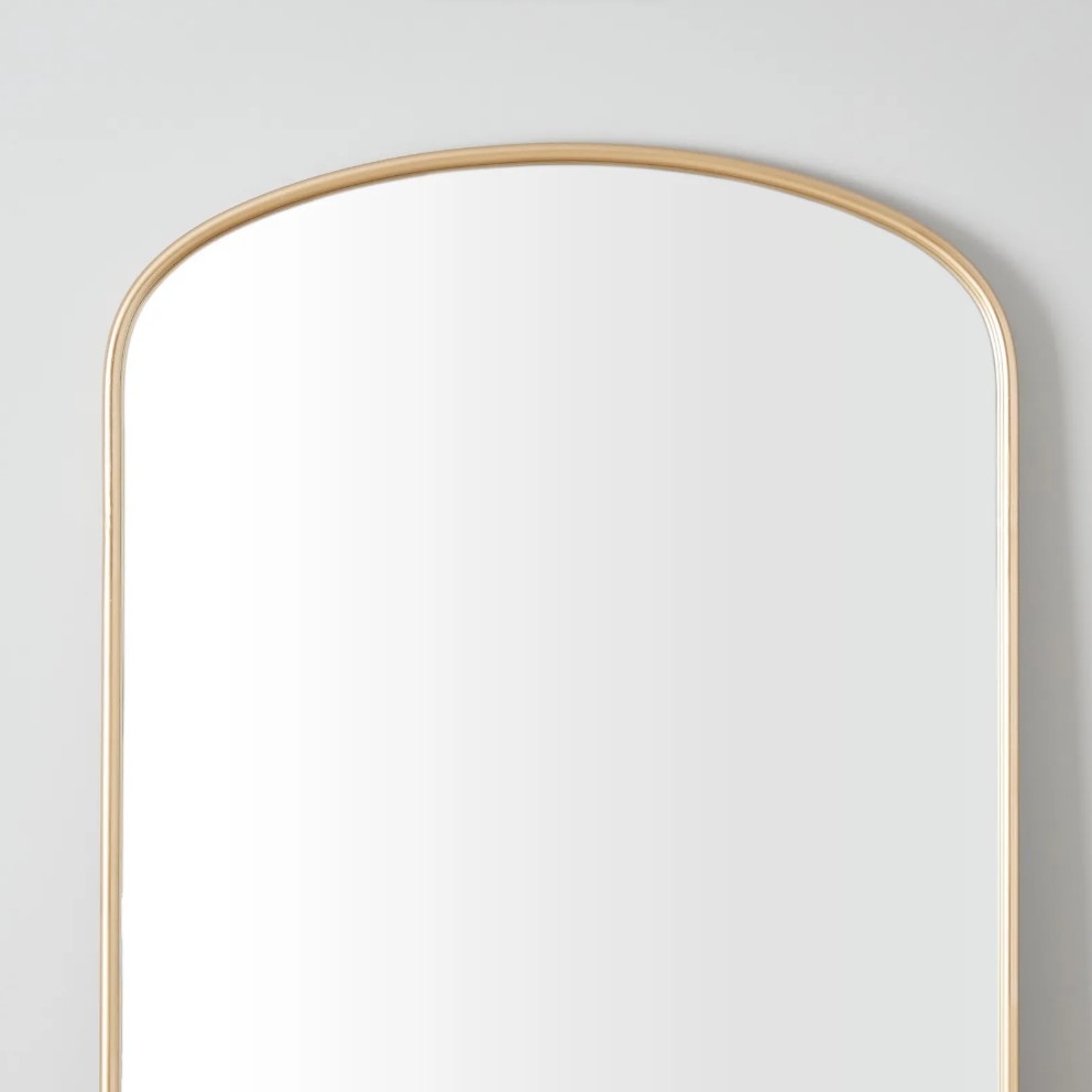 A symphony of simplicity and elegance, the Olsen Gold Arched Floor Mirror beautifully encapsulates modern sophistication. Its gracefully arched design offers a soft contrast to straight-lined furniture, introducing an element of gentle curvature that transforms any space into an inviting haven.