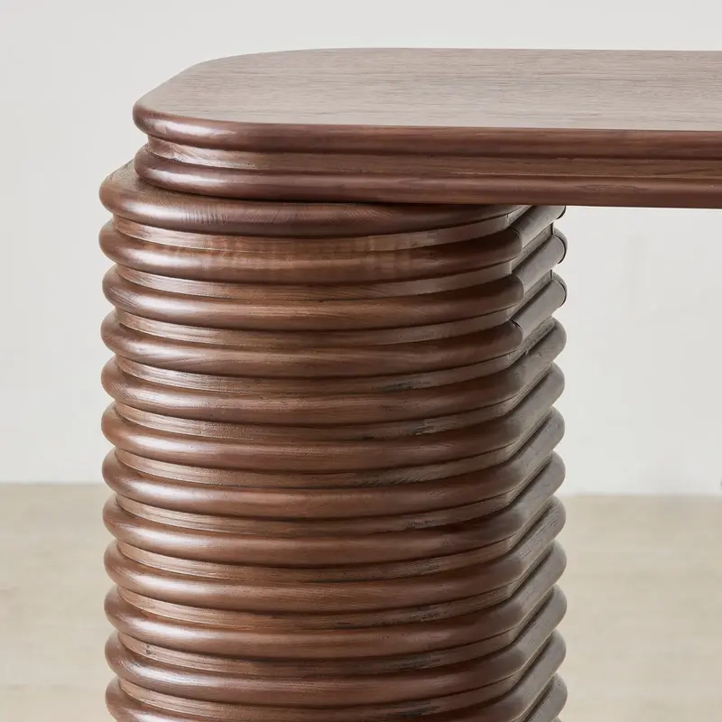 Its intricately ribbed cylindrical legs highlight fine craftsmanship and a sculptural aesthetic. Blending practicality with timeless design, the Ophelia adds warmth and refinement to any setting.