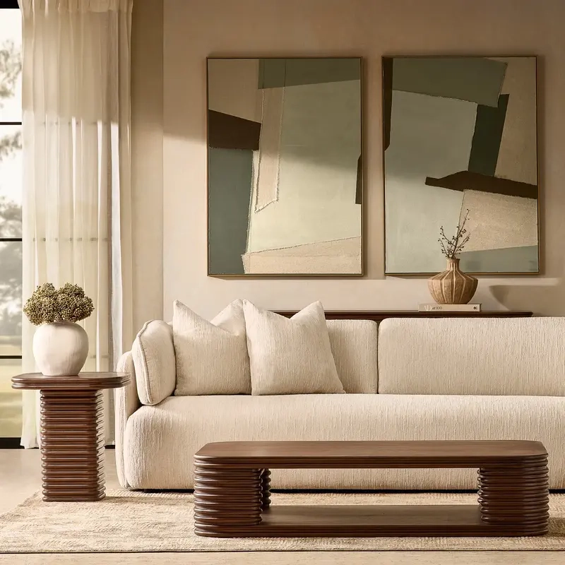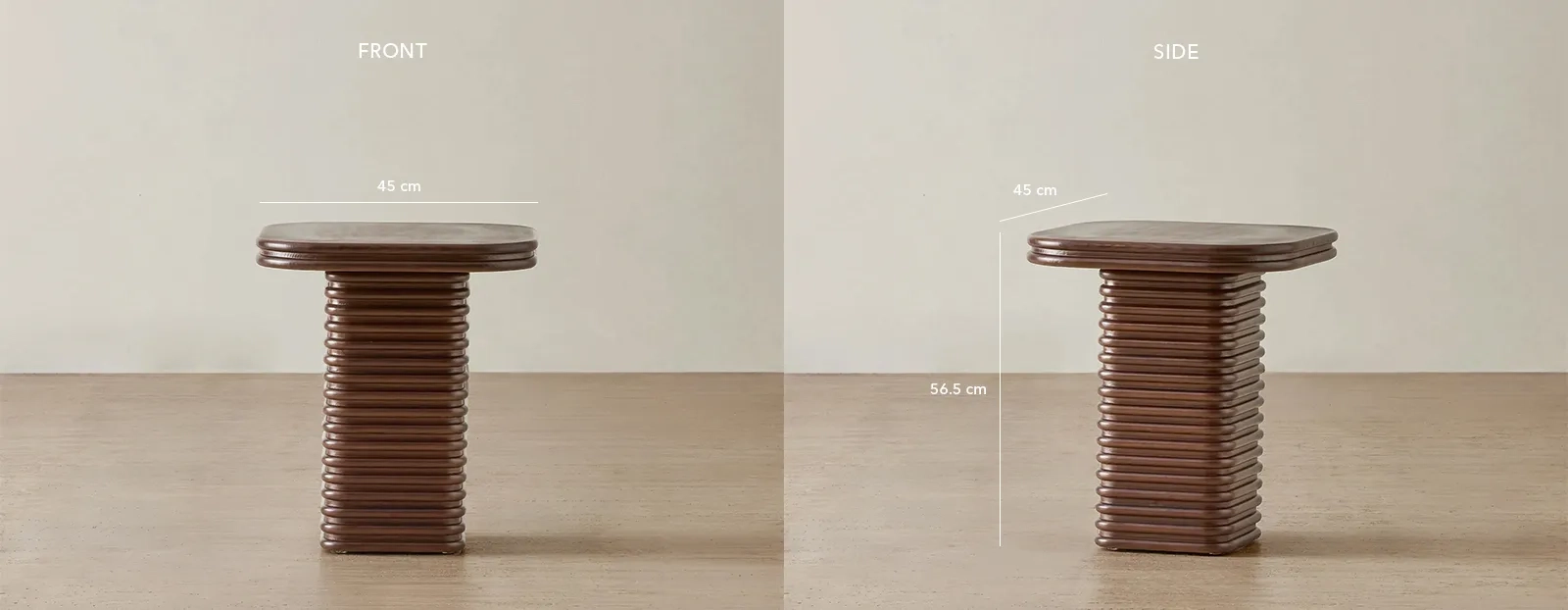 With its distinctive ribbed column base, the Ophelia blends strength and sophistication in equal measure. Designed to sit beautifully beside a sofa or armchair, it serves as both a practical surface and a sculptural accent.