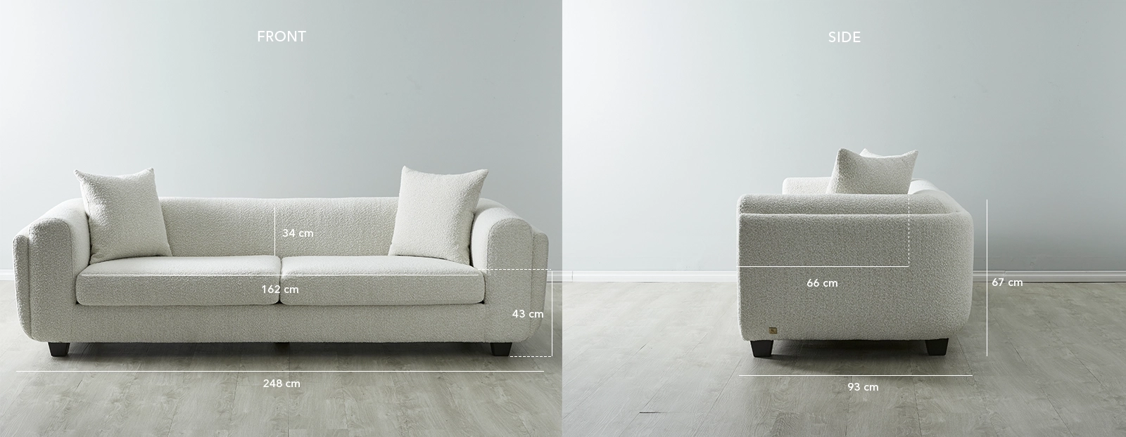 Experience exceptional comfort with the Phylis Sofa, perfect for gatherings with family and friends. Upholstered in premium soft boucle fabric, its well-crafted frame combines beauty and comfort.