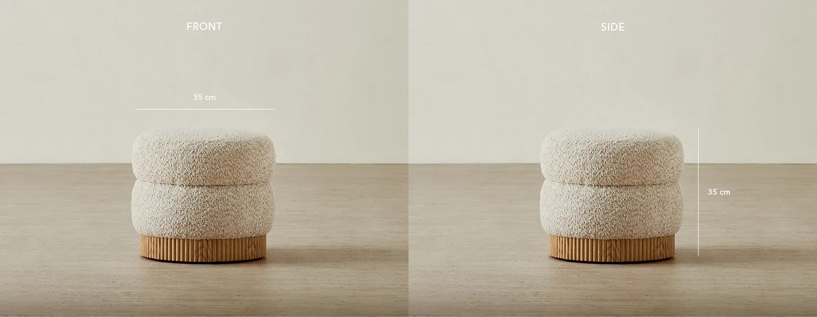 The playful, stacked shape sits atop a sturdy ribbed wood base, adding charm and stability in equal measure. Lightweight and easy to move. It’s a perfect perch for storytime, make-believe, or just taking a break.