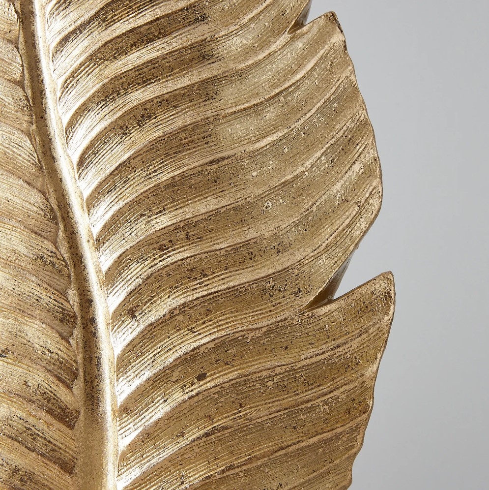 The Platano Leaf Gold Resin Vase is a sublime fusion of nature-inspired design and exquisite craftsmanship. Painstakingly molded from high-quality resin, this piece captures the intricate details and the graceful structure of the platano leaf, standing vertically in all its glory.