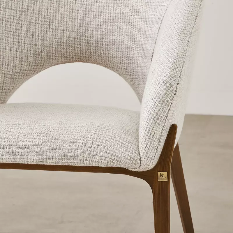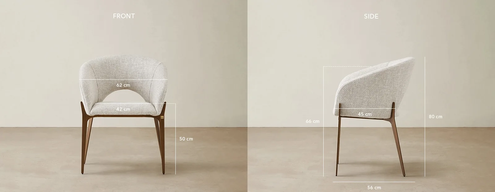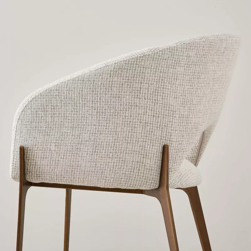 The bronze legs create a striking contrast, adding warmth and depth to its design. Seamlessly combining style and function, this chair is a standout piece for any dining setting.
