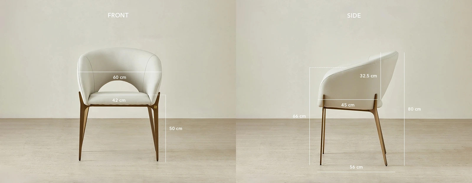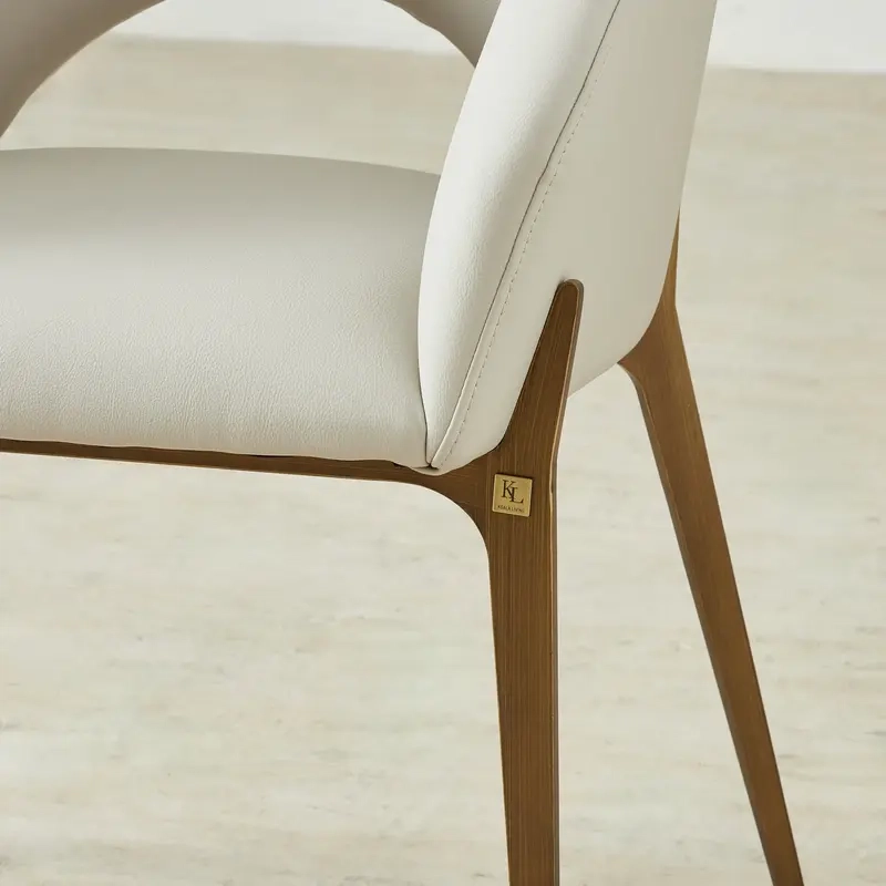 The Polina Dining Chair pairs smooth glacier grey vegan leather with a gracefully curved backrest for a look that’s both modern and inviting. Its open-back design brings a light, sculptural quality that elevates any dining space.