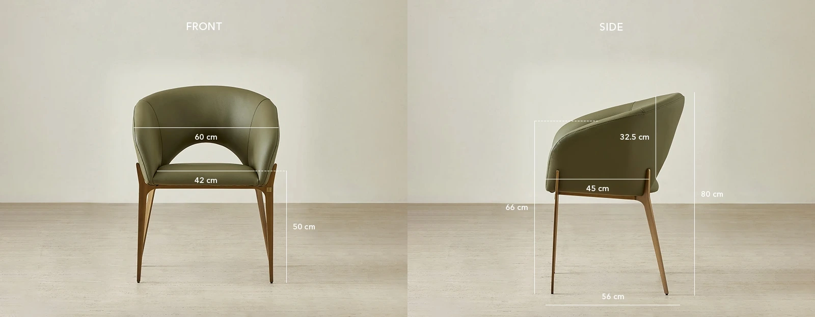The Polina Dining Chair pairs smooth sage green vegan leather with a gracefully curved backrest for a look that’s both modern and inviting. Its open-back design lends an airy elegance that complements a variety of dining spaces.