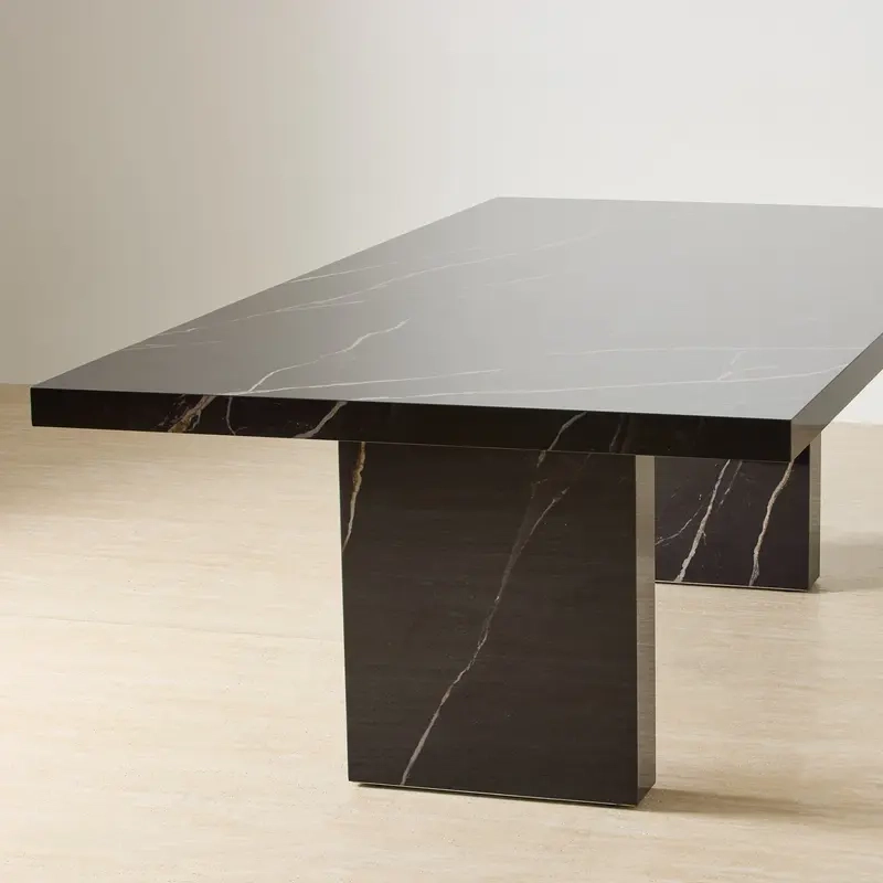 The Port Lucienne Dining Table makes a powerful statement with its striking monolithic form and bold slab construction. Crafted from Nero sintered stone, it showcases deep, dramatic tones with subtle veining that recalls the richness of natural marble.