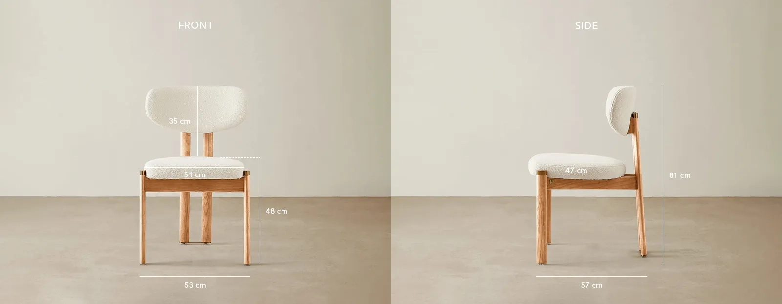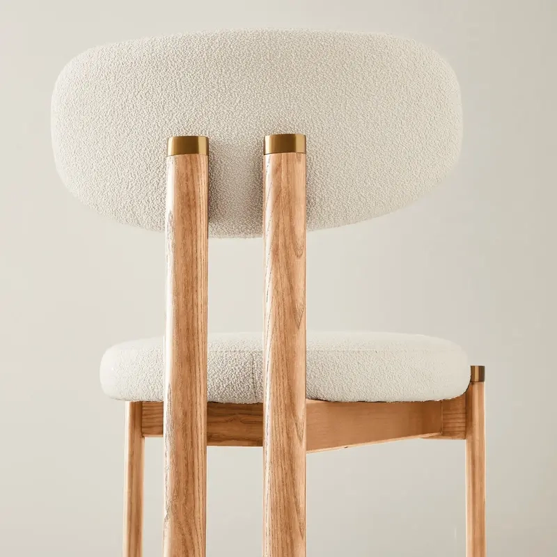 The light brown ash legs ground the design with natural warmth and clean geometry. Subtle brass accents complete the look, blending timeless craftsmanship with a modern, inviting presence.