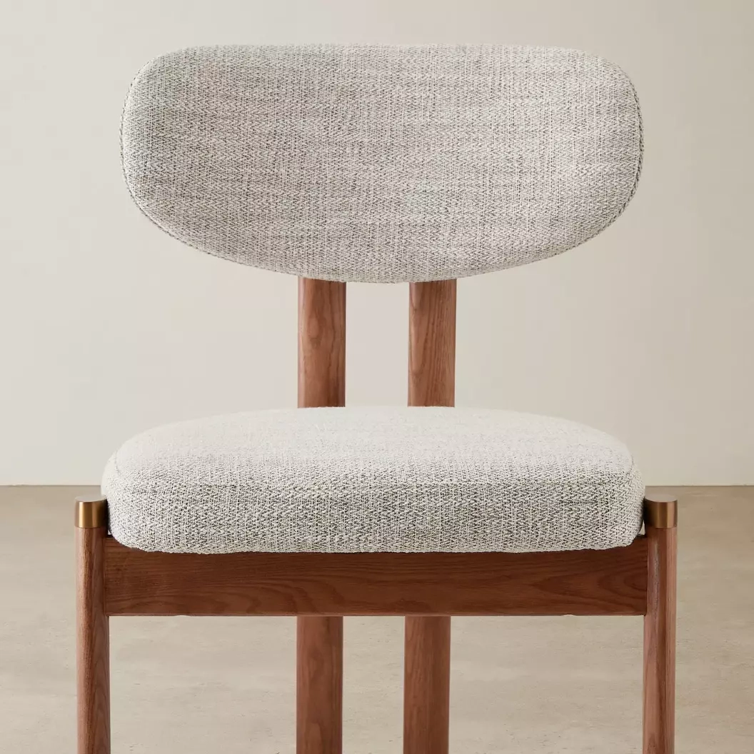 Elevate your dining space with the epitome of modern elegance found in The Portobello Murmur White Fabric Dining Chair. This masterpiece is not just a piece of furniture but a statement of style and sustainability. It boasts a meticulously crafted wooden frame, bathed in a warm, toffee brown hue that highlights the rich, visible grain, adding depth and character to its design. The chair's beauty is further accentuated by the luxurious Murmur White fabric that envelops the seat cushion and backrest, providing not just visual appeal but unparalleled comfort that invites longer conversations.