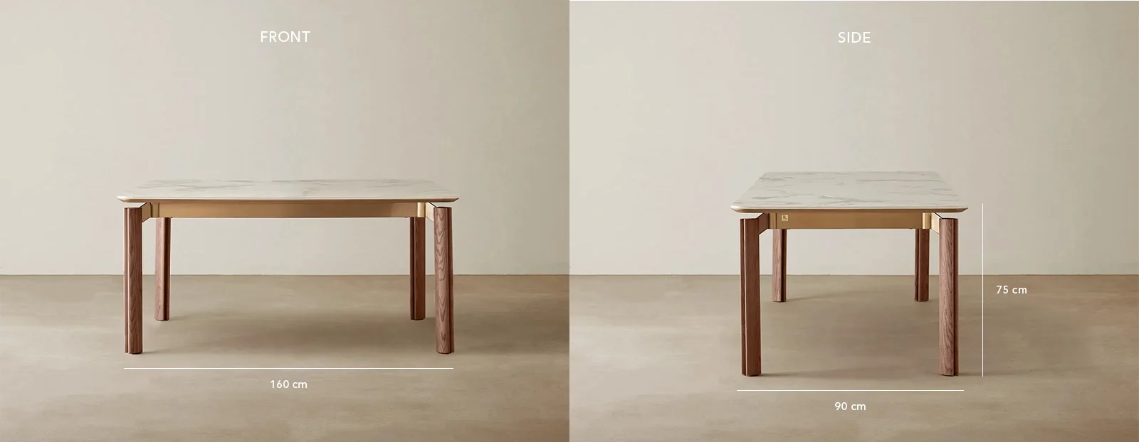 Gather the family for meals and moments with the Portobello Dining Table. showcasing a modern minimalist silhouette and a luxe sintered stone top. Enjoy great company as it comfortably seats up to six.