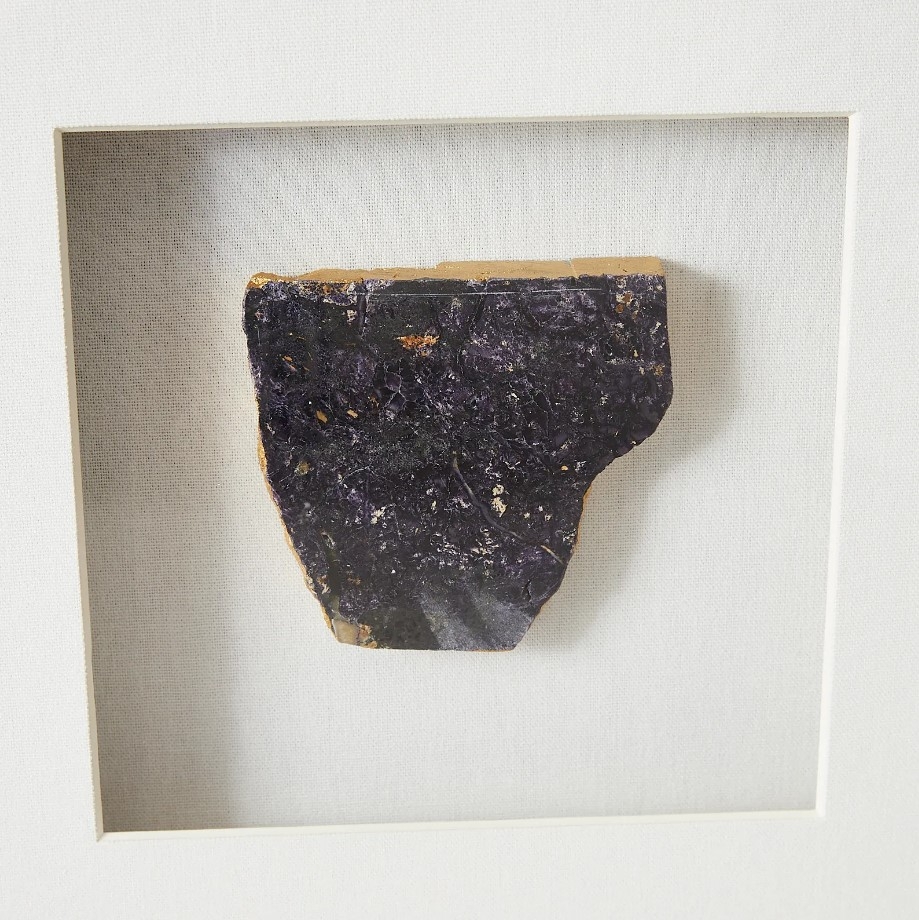 The Purple Stone Shadow Box is a striking piece that celebrates the natural allure of mineral beauty, showcasing a captivating stone in a deep, resplendent hue of purple. This stone, set against a contrasting backdrop, is more than just a visual treat; it's a symbolic centerpiece that may represent nobility, wisdom, and spirituality, qualities often associated with the color purple throughout history.