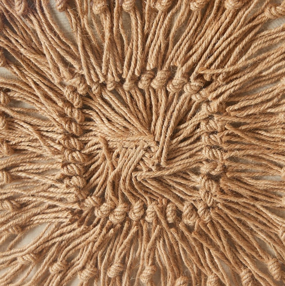 The hemp rope, with its coarse and fibrous strands, offers a tactile richness that is increasingly rare in a world of synthetic materials. Its varying shades of tan and brown intersect and weave together, creating a visual depth that can be both calming and intriguing.