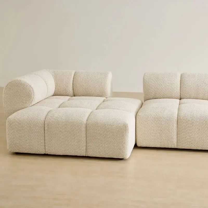 Quincy Stone Cream Woven Fabric Modular Corner Sofa with Left Cuddler