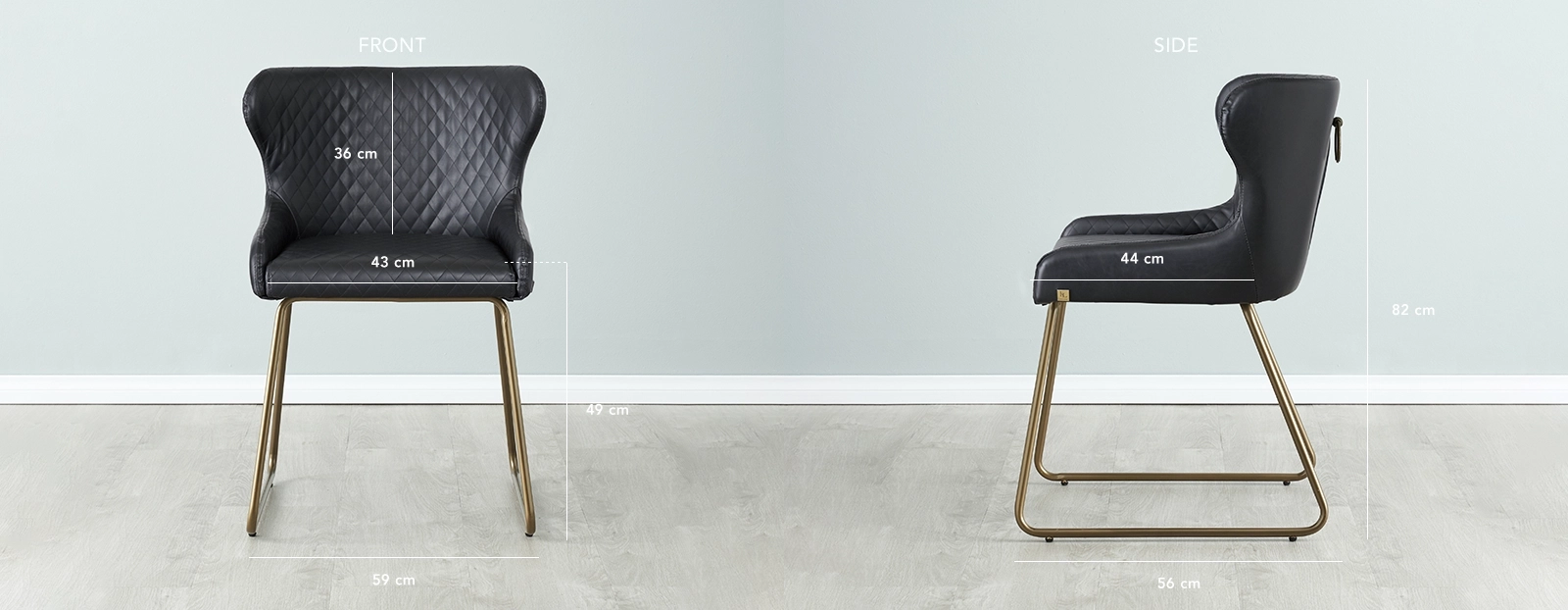 Liven up your homes with the captivating beauty of our Quinn Chairs. The Quinn Black Vegan Leather Dining Chair is a true embodiment of simplicity and elegance, offering a timeless design that effortlessly complements various interior styles. Its stylish black-coloured seat, made of luxurious vegan leather, not only adds a touch of sophistication but also provides a comfortable seating experience. The mesmerizing cross-stitched design that adorns the entire seated area adds a touch of artistry and craftsmanship.