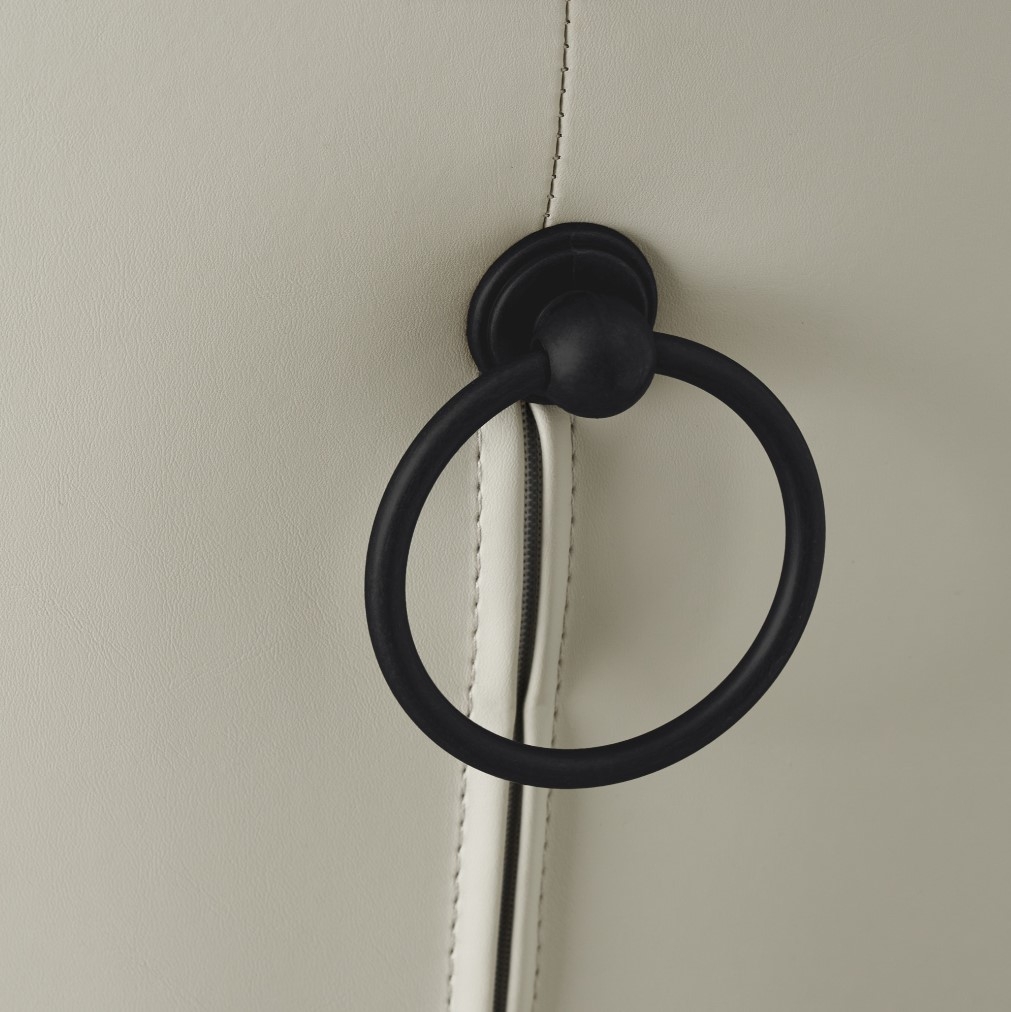Meticulously crafted, a stylish black-coloured frame forms the sturdy base of the stool, complementing its rich cloud grey-coloured seat. This frame elegantly transitions into an integrated footrest, designed to ensure optimum comfort while enhancing the stool's stability. Adding a touch of whimsy and distinctiveness to the piece is a decorative pull ring on the back, contributing an additional layer of character to the stool's aesthetic appeal. The Quinn Cloud Grey Vegan Leather Bar Stool is a medley of luxurious colours and stylized design that make it a thrilling addition to your home decor collection.