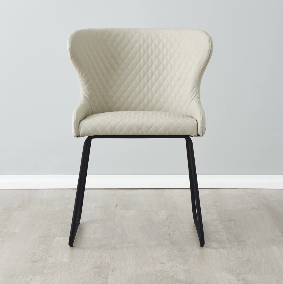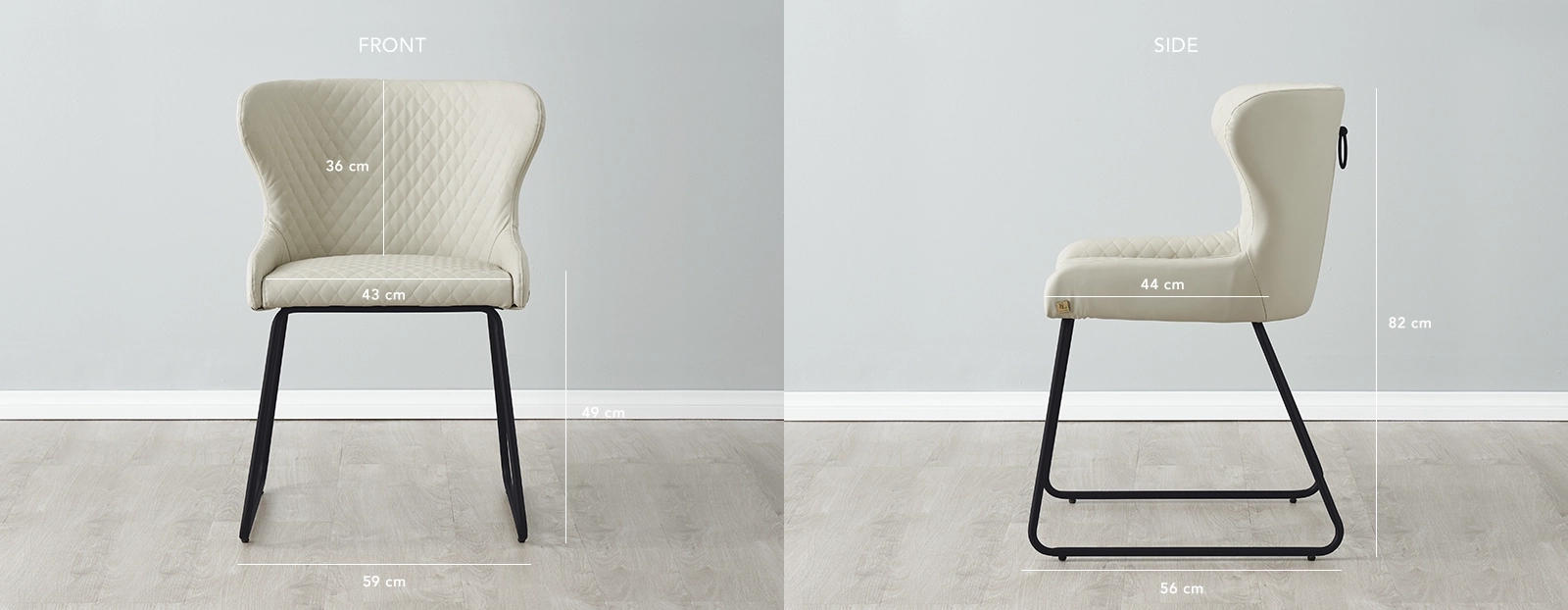 Liven up your homes with the captivating beauty of our Quinn Chairs. The Quinn Cloud Grey Vegan Leather Dining Chair is a true embodiment of simplicity and elegance, offering a timeless design that effortlessly complements various interior styles. Its stylish Cloud Grey-coloured seat, made of luxurious vegan leather, not only adds a touch of sophistication but also provides a comfortable seating experience. The mesmerizing cross-stitched design that adorns the entire seated area adds a touch of artistry and craftsmanship.