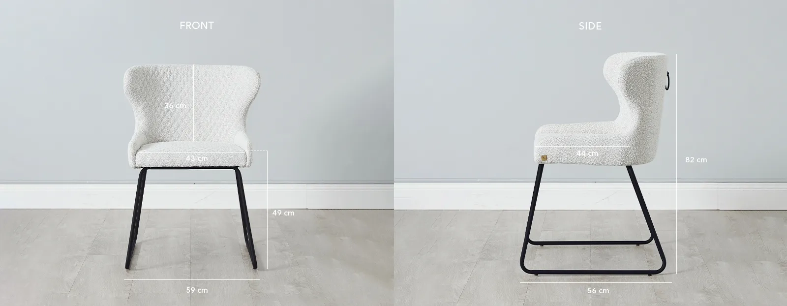 Liven up your homes with our simple and elegant Quinn Chairs. The Quinn Chair - Cream features a stylish cream-coloured seat made of soft boucle fabric that gives the piece a textured look while making for a very comfortable seating experience. A mesmerizing cross-stitched design decorates the entire seated area.