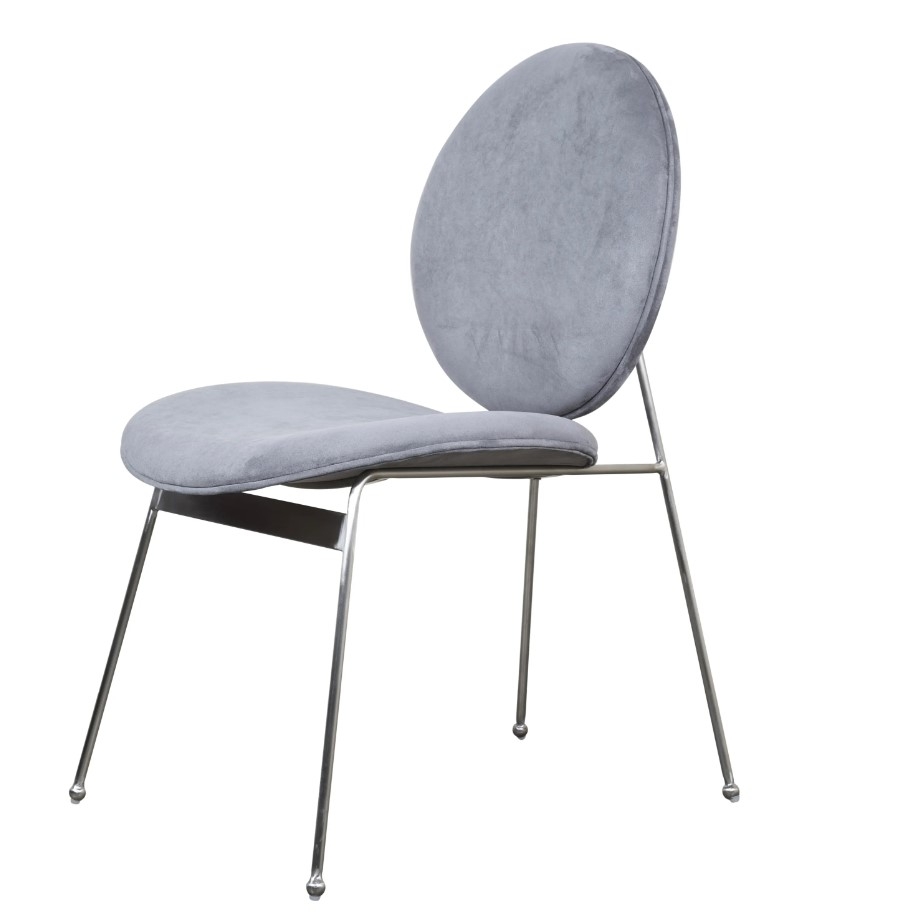 This versatile shade of grey blends seamlessly with a variety of color schemes and decor styles, making it an excellent choice for any dining room. Supporting this exquisite seat is a thin yet sturdy frame made of stainless steel, which adds a sleek and modern look to the chair. The frame's slender design contributes to the chair's elegant profile, while its stainless steel construction ensures strength and durability.