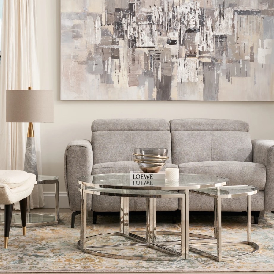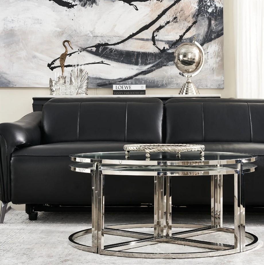 The mini tables have triangular glass tabletops. Combined with the Raquelle's design, they are perfect for hosting gatherings and can be paired with your favorite decor or modular sofas.