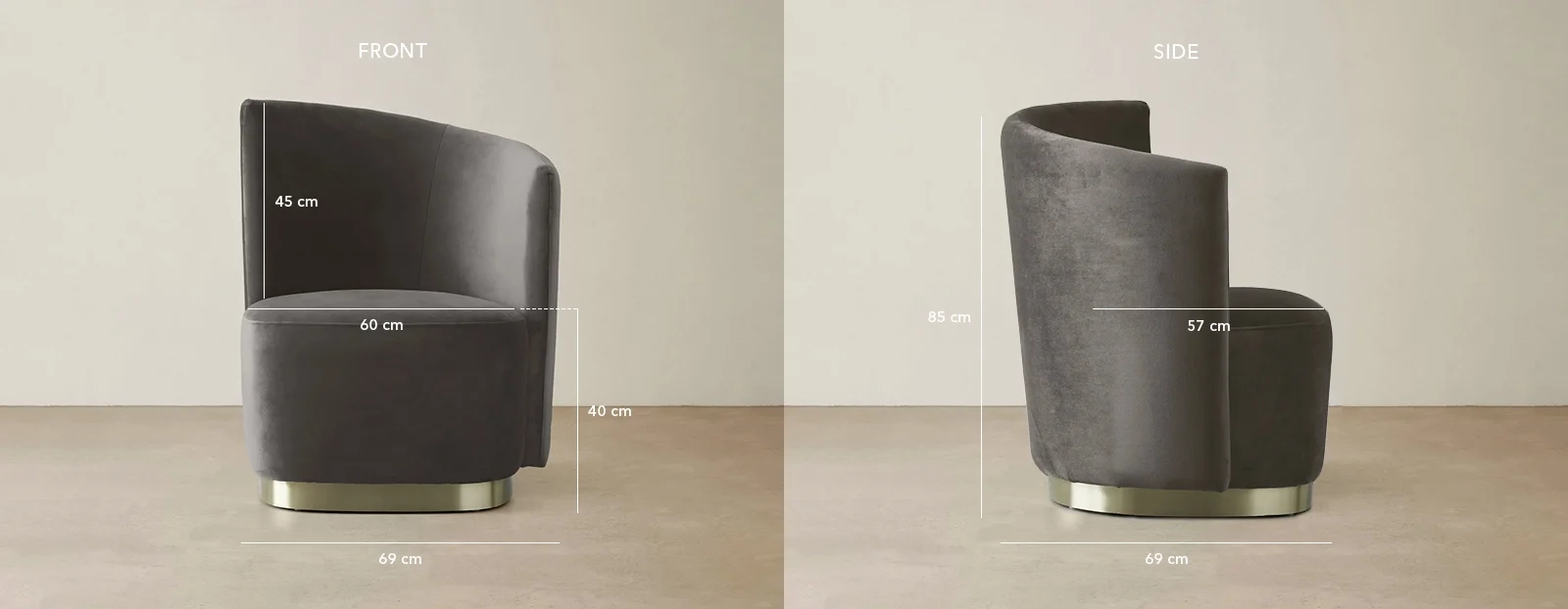 Challenge conventions with the Reina Chairs. The Reina Asymmetrical Mushroom Velvet Chair – Right Apex brings sophistication with its semi-curved backrest and sleek asymmetrical design, creating a luxurious lounging experience.