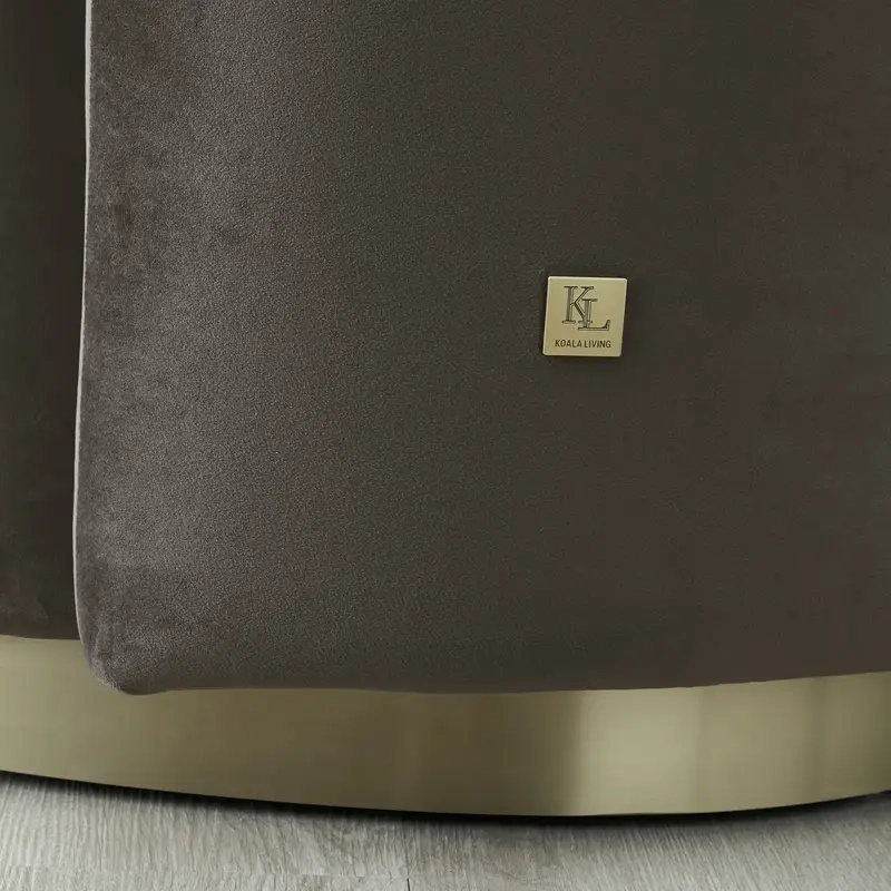 Upholstered in soft mushroom velvet, the Reina features a dense foam-padded seat for exceptional comfort. Its brushed champagne gold stainless steel legs provide stability and a refined touch of elegance.