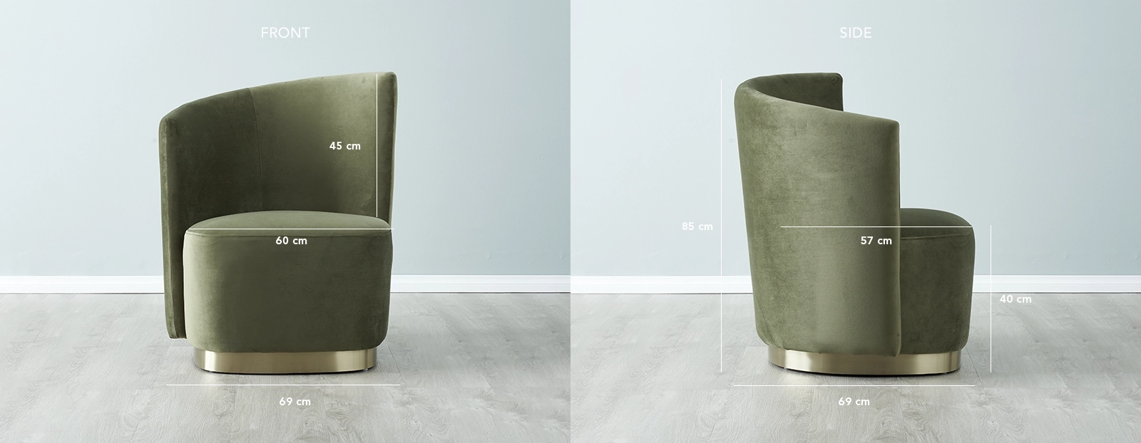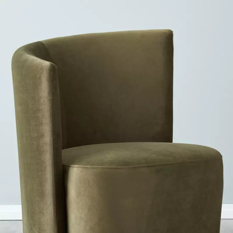 Challenge conventions with the Reina Chairs. The Reina Asymmetrical Olive Green Velvet Chair brings sophistication with its semi-curved backrest and stylish curves for a luxurious lounging experience.