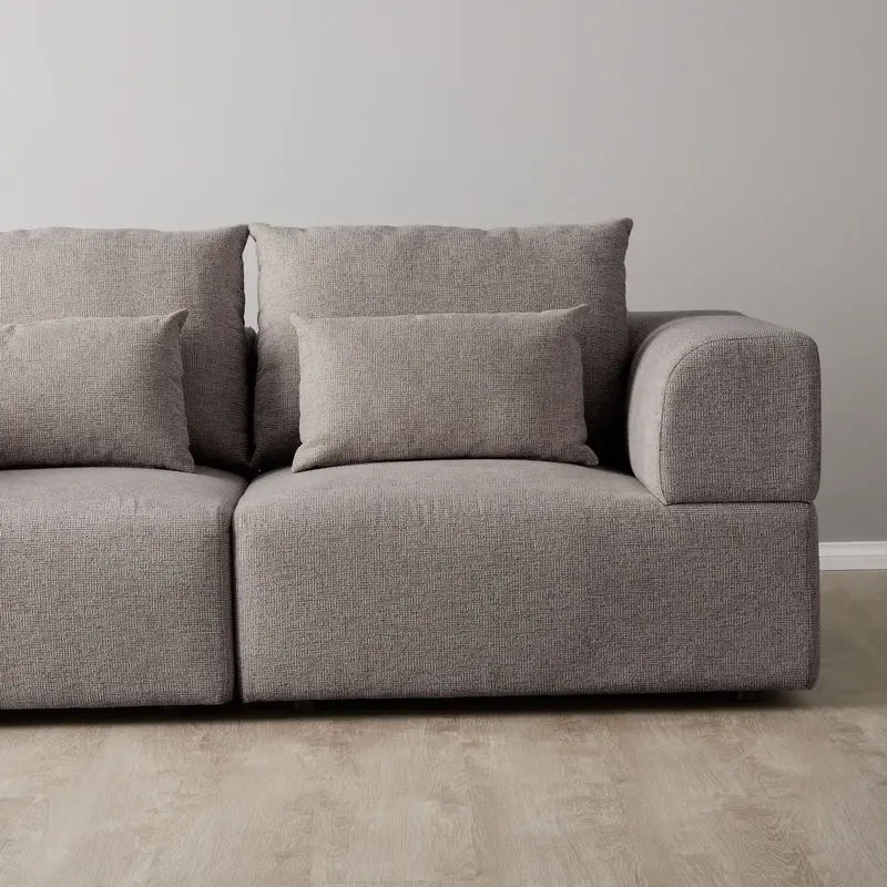 The Riviera III Graphite 2 Pieces Modular Fabric Sofa is wrapped in soft, woven graphite fabric, offering a luxurious feel and a bold, modern look. Its deep, neutral tone adds sophistication to any space, while the included matching cushions enhance comfort and style—perfect for shared moments and intimate lounging.