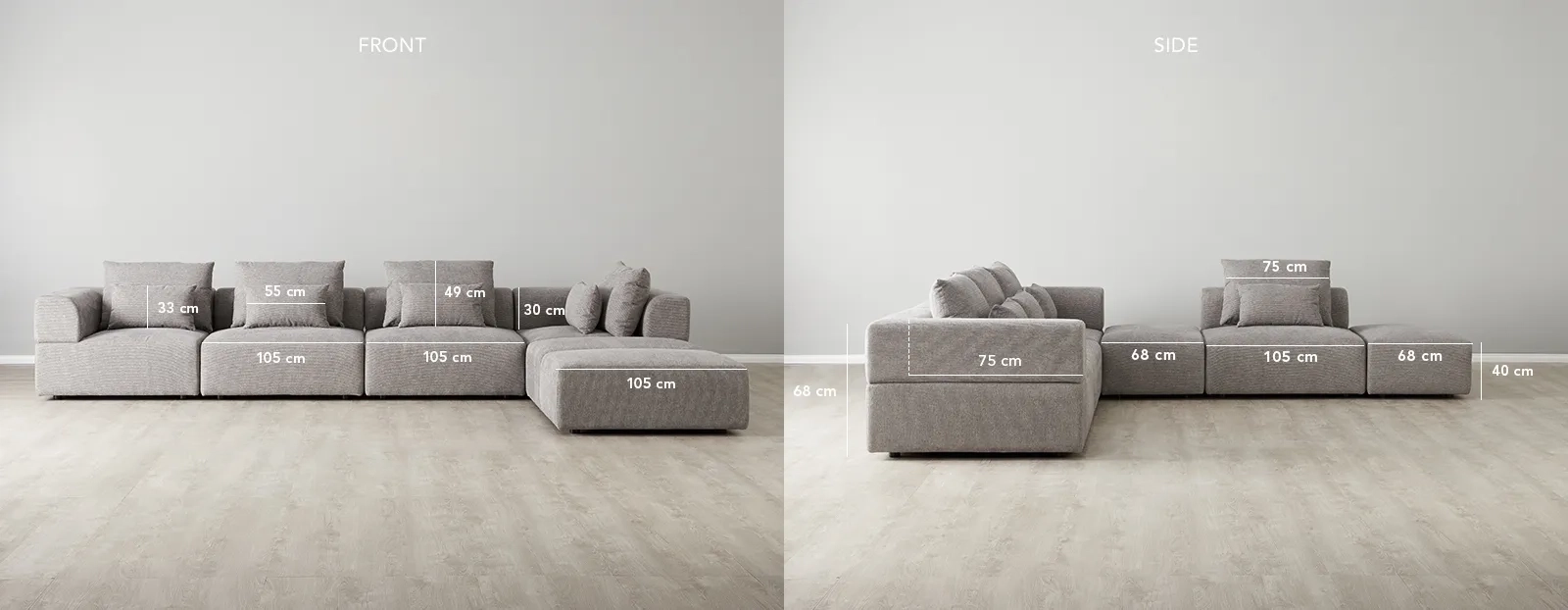 The Riviera III Graphite Fabric Modular Sofa is upholstered in soft, woven fabric in a rich graphite tone, offering a perfect balance of luxurious texture and bold, modern appeal. Its deep, neutral shade brings sophistication to any space, while the included matching cushions enhance both comfort and style for a cohesive, polished look.