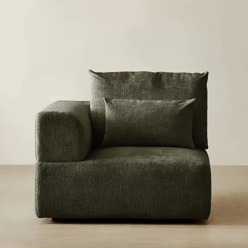 Riviera III Green Chenille Fabric Sofa - Left Seat